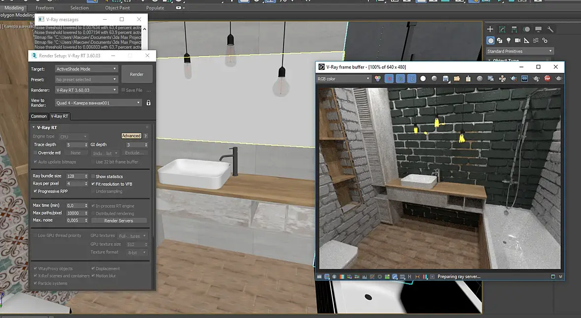 Добрый день. Стены являются одним объектом и имеют материал Multi/Sub-Object и уникальные саб маты для каждого полигона, среди которых есть материал кирпича с Displacement картой, назначенной на один из полигонов стен. Но во время рендера в режиме ActiveShade Mode выдавливаются все полигоны объекта "Стены", не смотря на то, что на остальных полигонах не назначена карта Displacement. Если убираю галку с этой карты на суб материале "Кирпич", то геометрия перестает выдавливаться. При рендере в режиме продакшн, такой проблемы не наблюдается