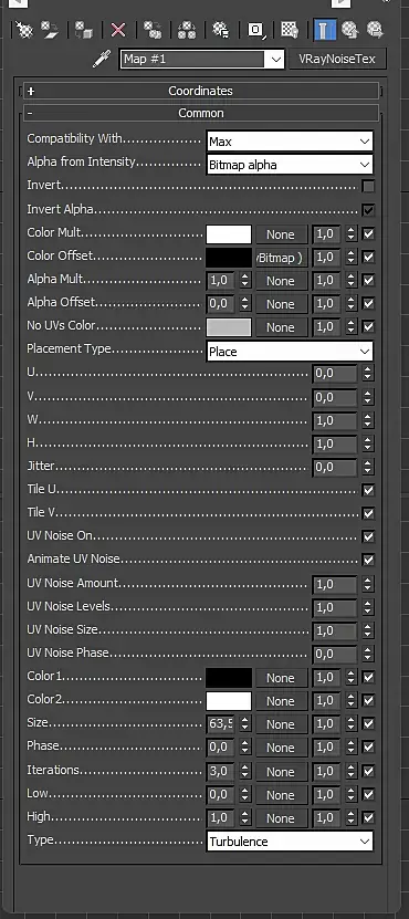 Подскажите, как заставить работать VrayNoiseTex? Не реагирует на изменение никаких параметров. Слот материала просто чёрный, в сцене материал тоже никак не проявляется.