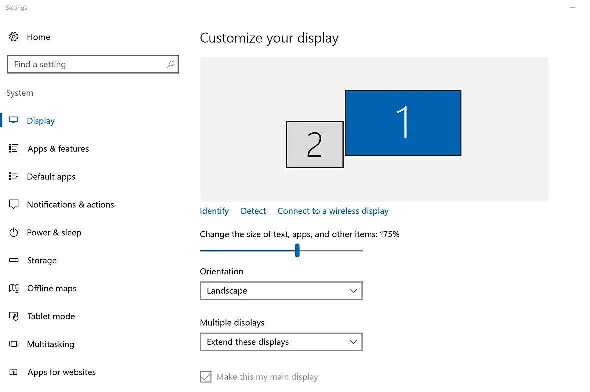 Появилась идея воспользоваться величиной его диагонали, и работать без очков (у меня близорукость), увеличив размер шрифтов и элементов в настройках Windows 10. Разумеется, приходится пожертвовать при этом площадью рабочей области. Но оно того стоит — я заметил, что работая без очков (-3.5 диоптрий), глаза устают значительно меньше.