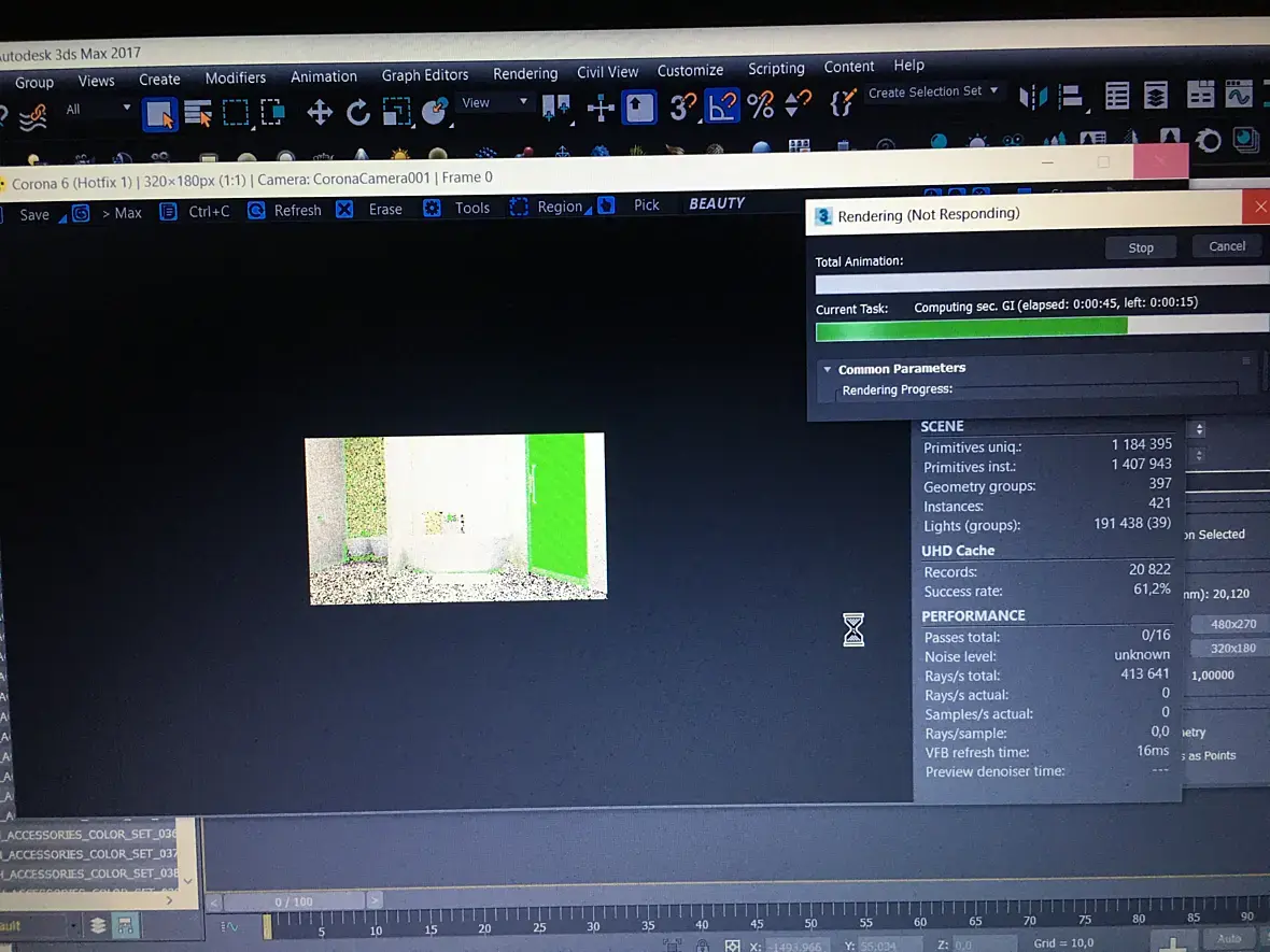 Mr.shmacks Спасибо ОГРОМНОЕ хороший человек - ситуация была 1 в 1 - Очень ПОМОГЛИ своей Подсказкой ! Удачи во всём тебе !!!При большом разрешении в 3Ds Max 17 /Corona Renderer 2.0 , начиная с 1920х1080 слетал Рендер .Теперь всё Гуд !