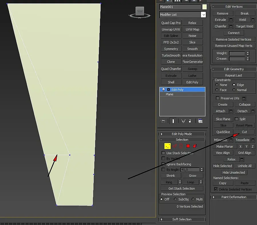 Хм, а если удалить эту точку через контрол шрифт, чтобы плоскость встала как надо, а потом через слайс создать едж на нужной высоте и удалить его? Точка будет на нужной высоте