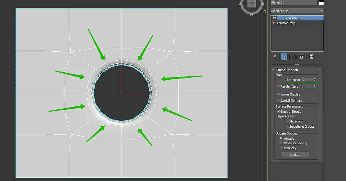 Это обычные ограничения любой студии, если кидать 2 итерации сетка слишком тяжелой будет, а если 8 вертексов делать то на одной итерации появляются углы в окружности. Сетка должна быть оптимизирована, окружности без углов то есть больше ребер, а на плоскостях меньше полигонов.