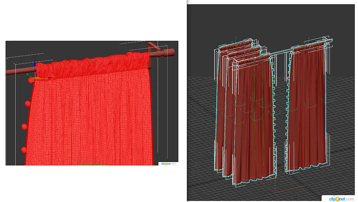 Они же из мервелоуса выходят без толщины. Да и вообще шторы-гардины всегда без толщины (как я понимаю). На них мат ложится даблсайдмтл. Если смотреть с обратной стороны то нормали, будут вывернуты.