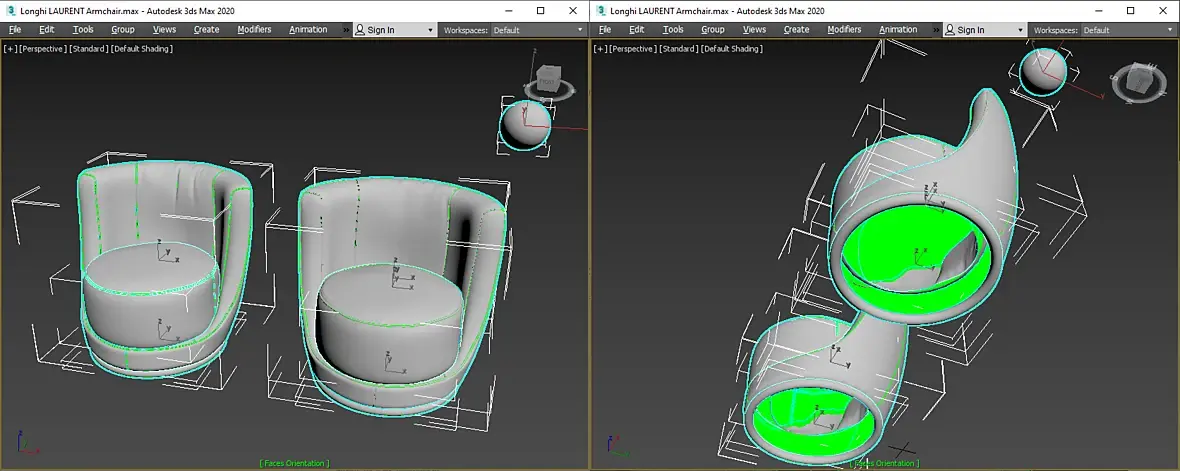 Тут у меня тоже на днях  приключения были с нормалями типа вывернутыми. Так и не добился, что бы мне показали где же они вывернуты, сняли с модерации. Да и модель простая, просматривается вся геометрия. Вообщем забил, там все равно симиляшка дивана из кресла, которое уже загружено. Особой ценности не несёт.