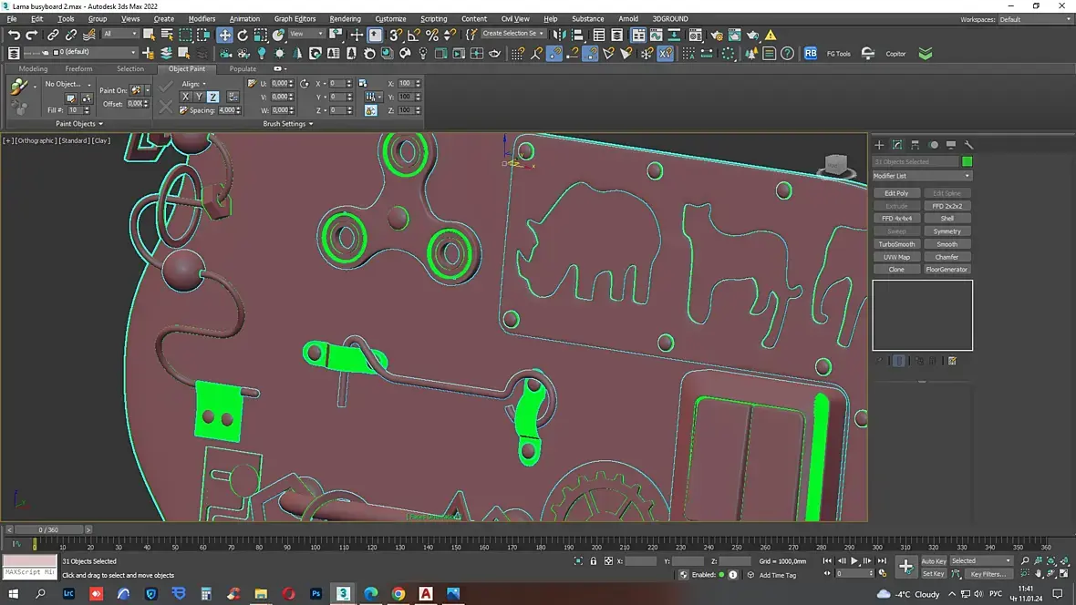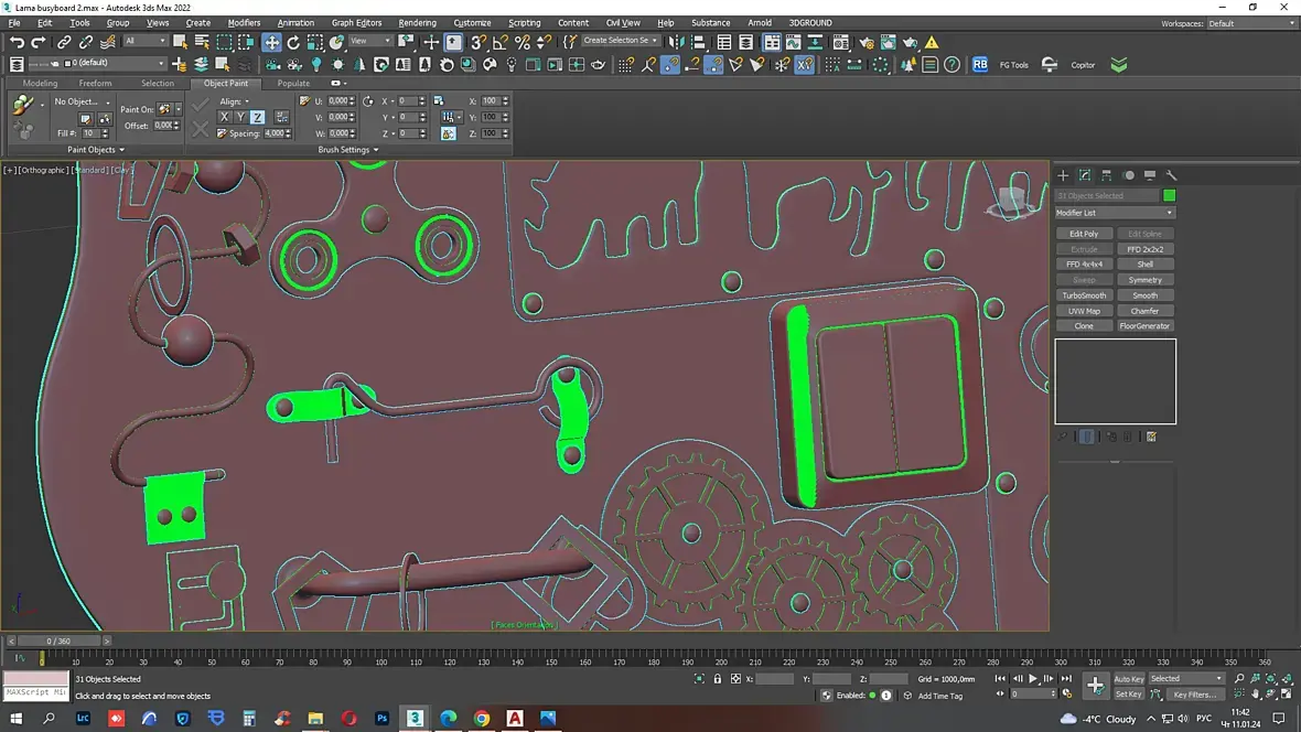 Добрый день! При отправке модели, пришел комментарий что вывернуты нормали. Из подсказок что рассматривались ранее, нашла неправильные нормали через Faces Orientation, но при попытке исправить через Normal, либо отдельные полигоны через flip, ничего не изменилось. При повороте во вьюпорте выделенные зеленым вывернутые нормали начинают перемещаться по всему объекту и становится не совсем понятно какие именно нормали нужно исправить.