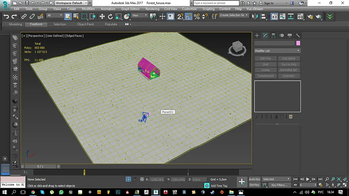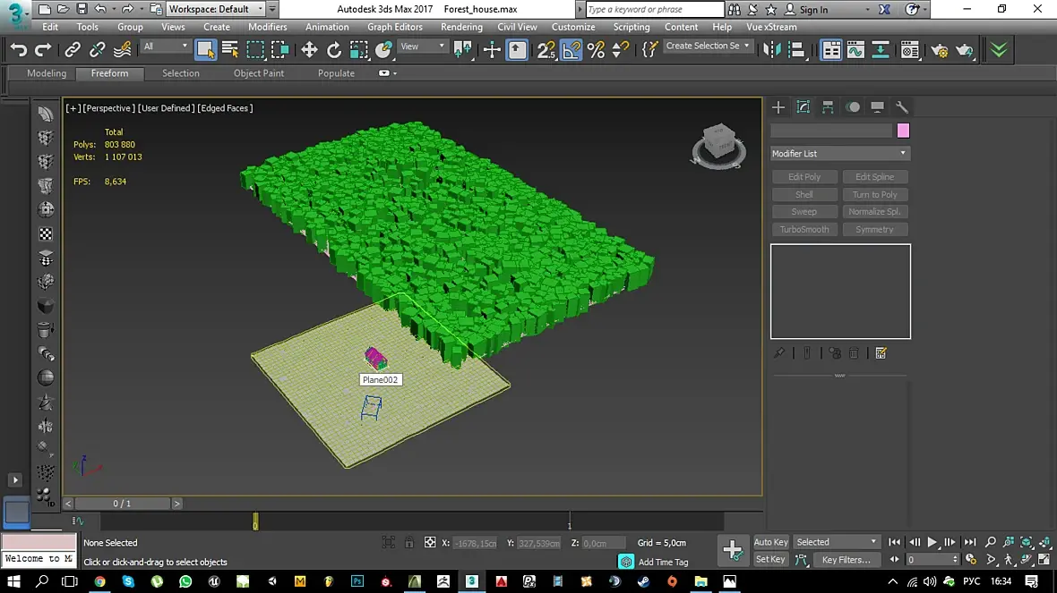 Дальше замоделил плейн, который будет играть роль подложки для леса. Наскаттерил туда ёлок.