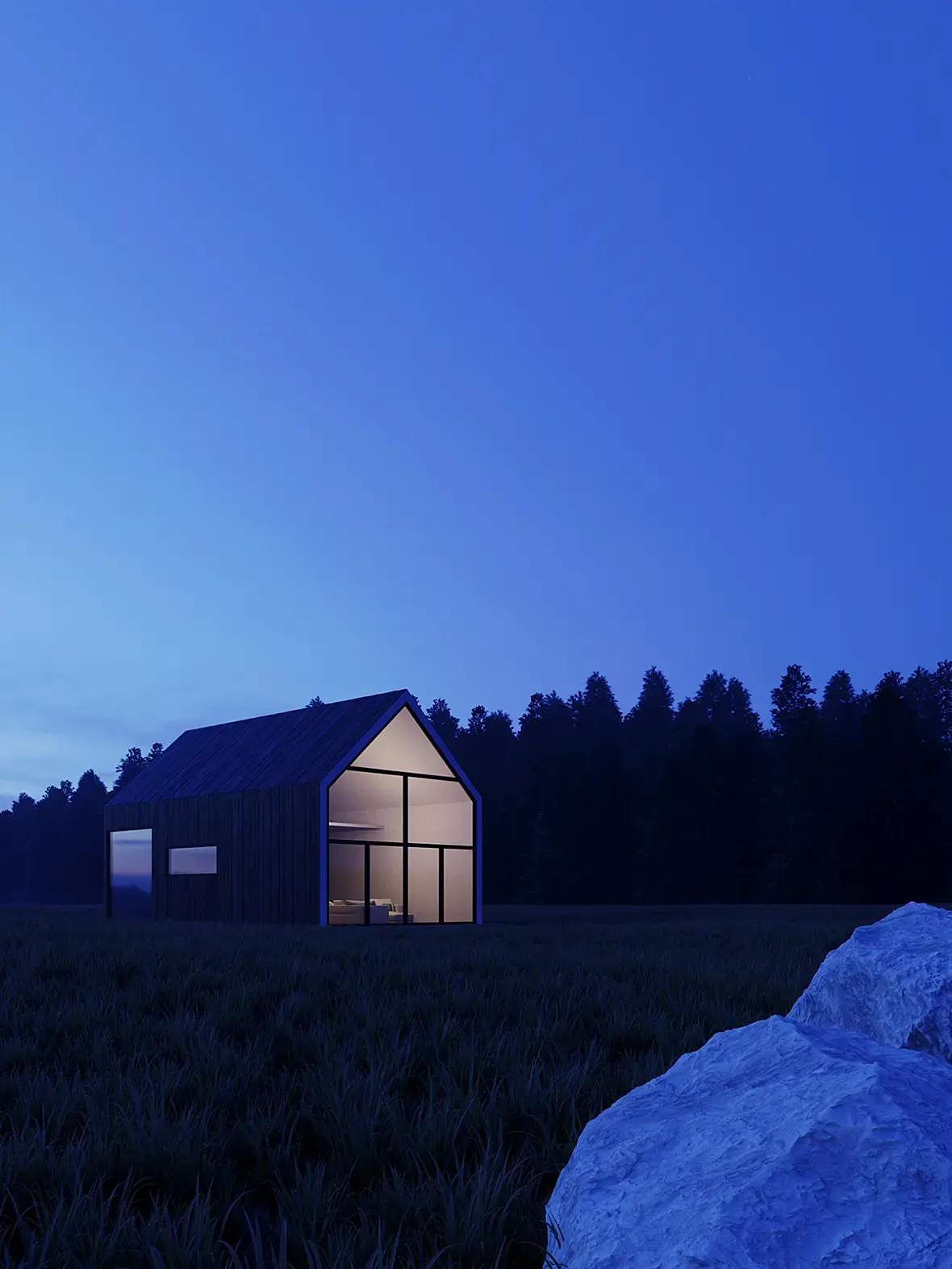 В работе наступило затишье, поэтому я решил сделать пару работ для галереи. Работ универсальных, что бы там было всё, и интерьер и экстерьер и окружение. Поковыряв пайнтерест нашел современный дом с чертежом планировки. Размеров не было, поэтому адаптировал по своему вкусу и "на глаз"