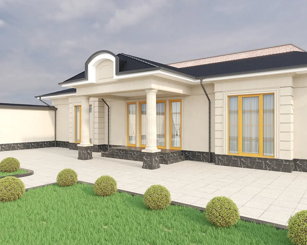 Скучная архитектура и текстуры. Нет деталей, не интересно разглядывать. Технически мне всё нравится (травка неоднородная, на тротуар не вылезает, объём читается, кустики аккуратные).