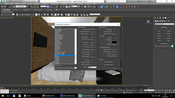 Всем привет! Нужна ваша помощь, тюль не отражаются в экране ТВ. Настройки Object Properties и Vray Properties для тюли прилагаю. Что можно ещё проверить?