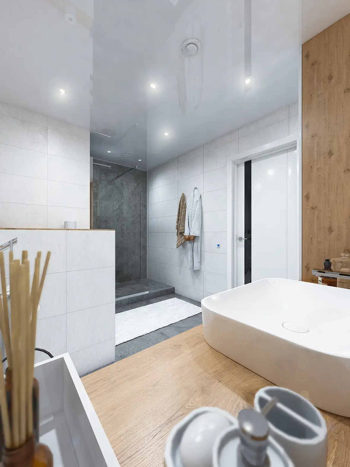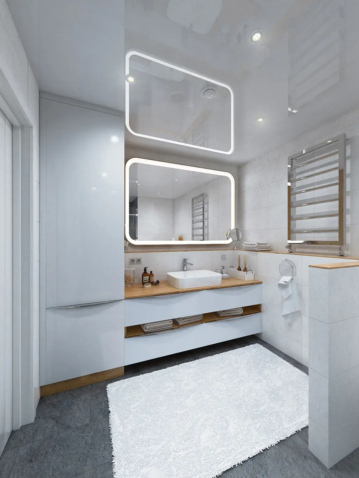 Немного смущают вывернутые камеры и постановка камер. текстуры неплохие, просто их нужно грамотно обработать. Еще мне не нравится место расположения полотенцесушителя, будет неудобно вешать на просушку длинные банные полотенца, т.к. будет мешать выступ. Ну и коврики по текстуре не очень натурально смотрятся