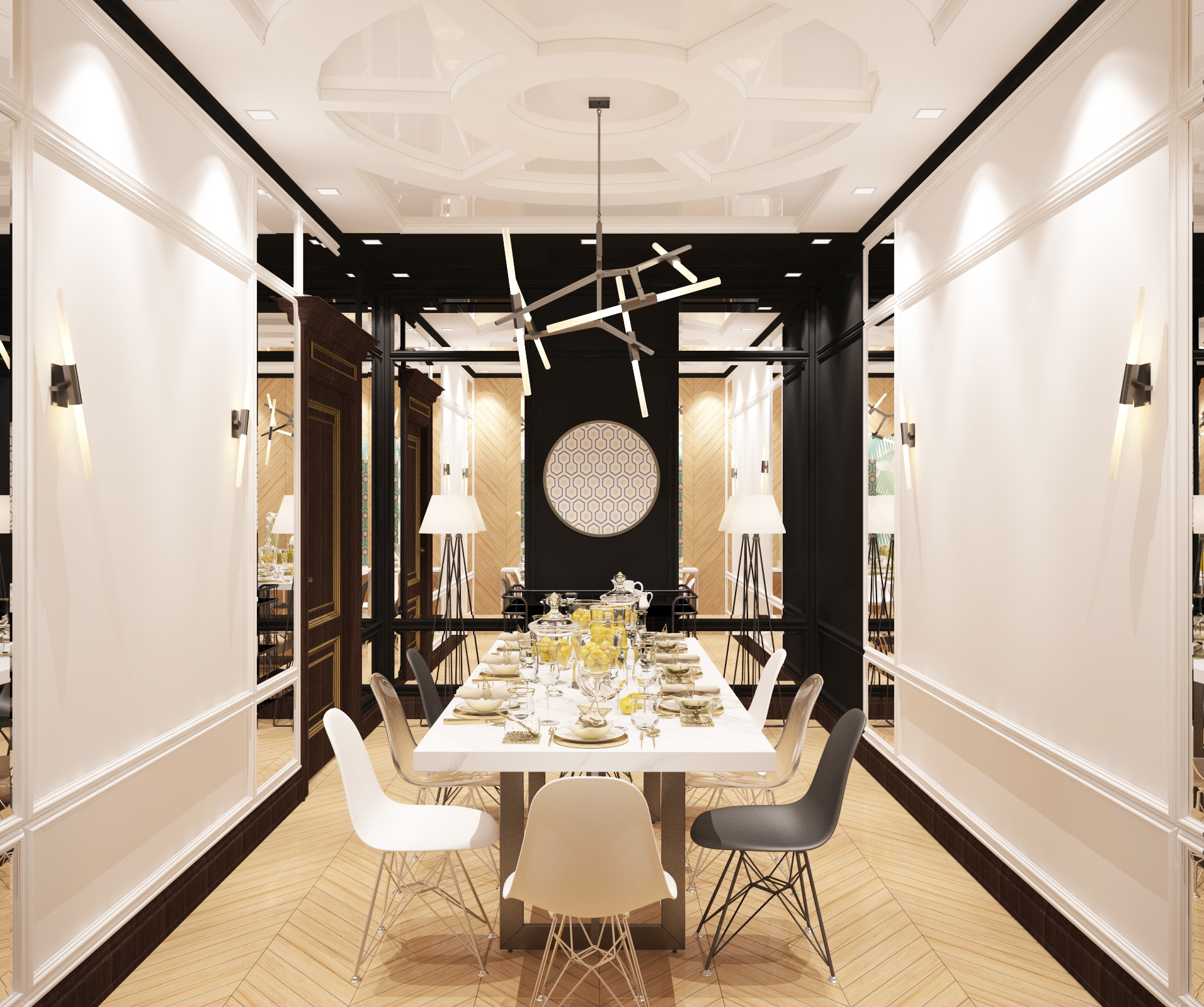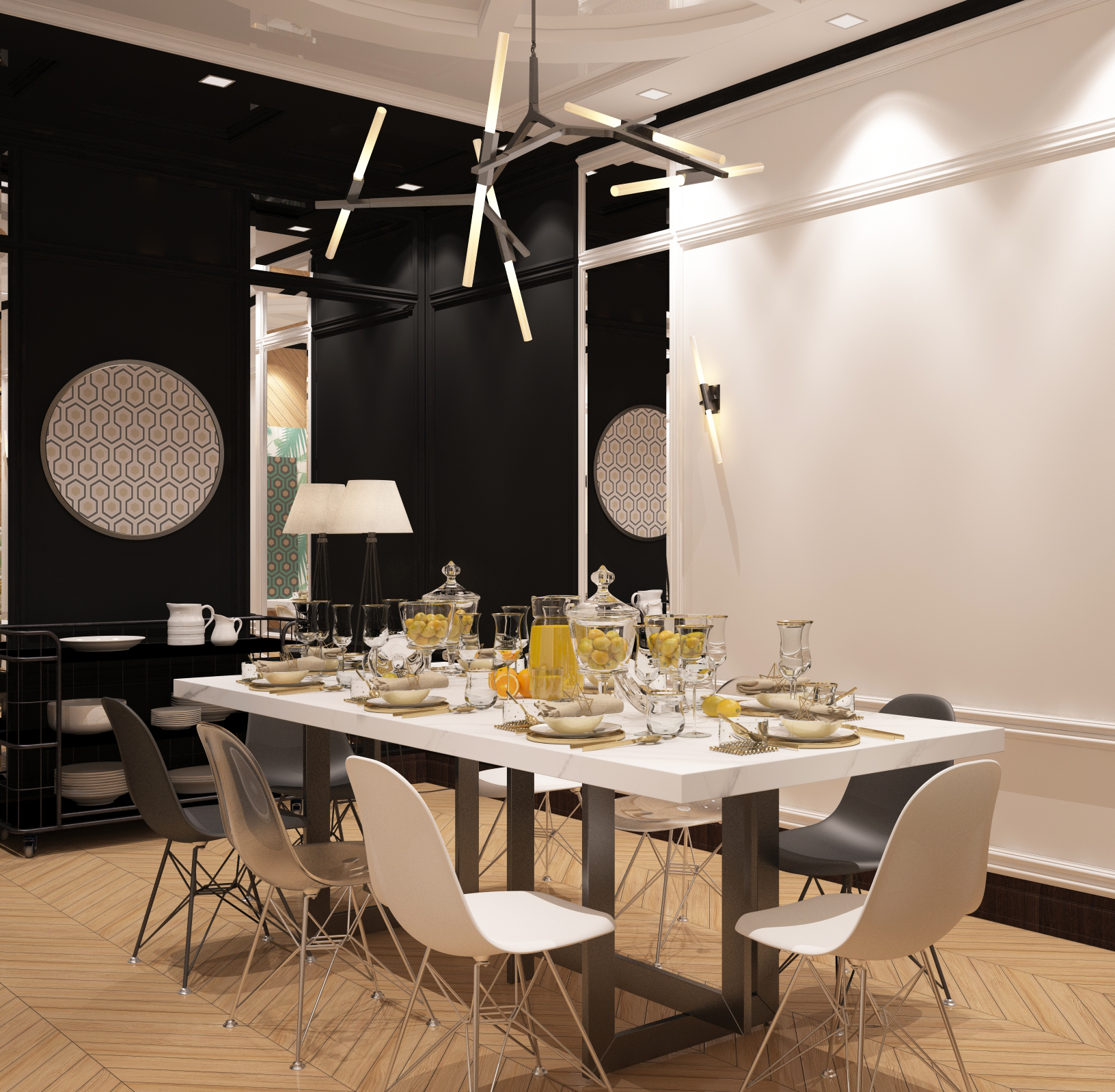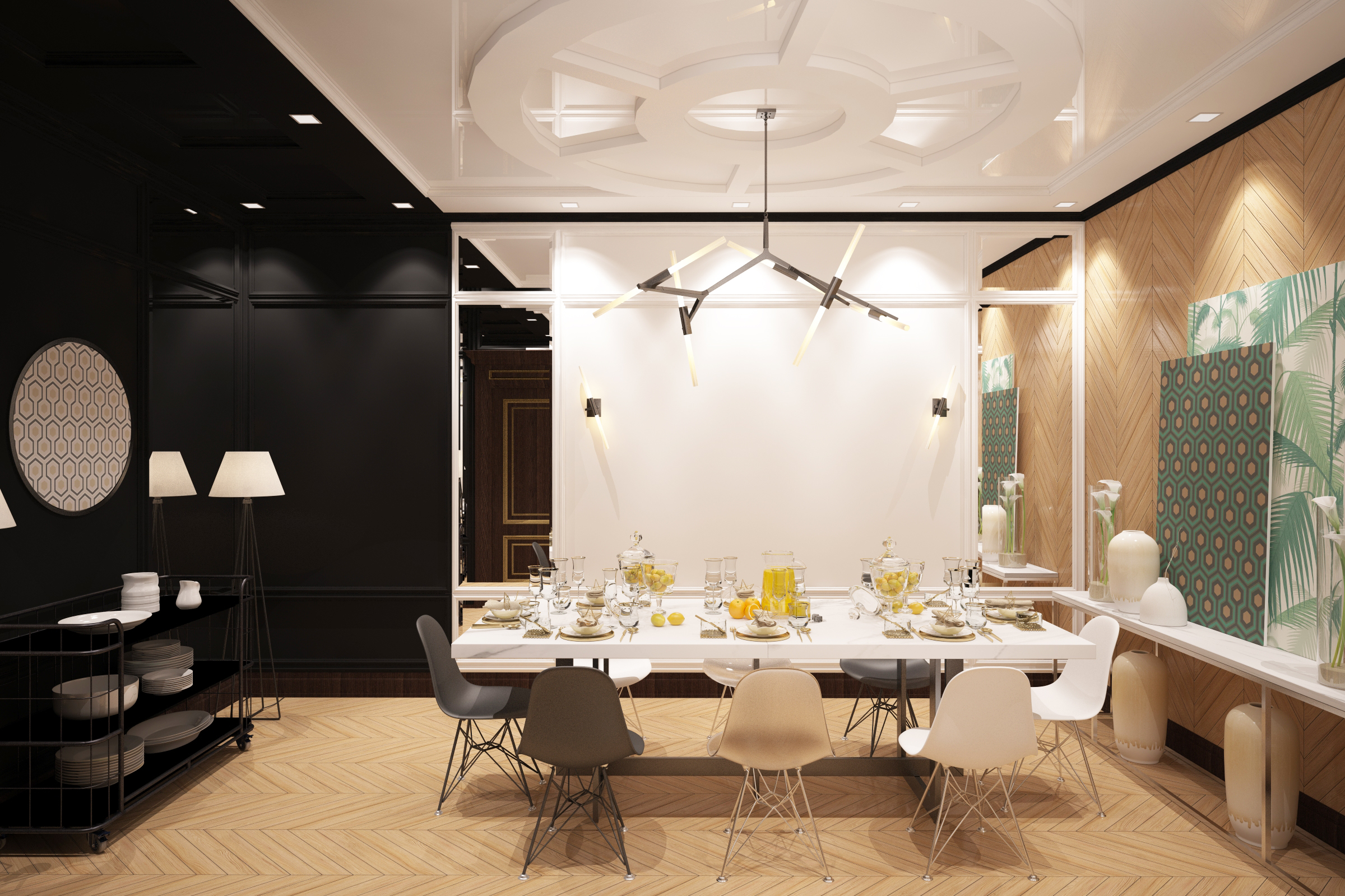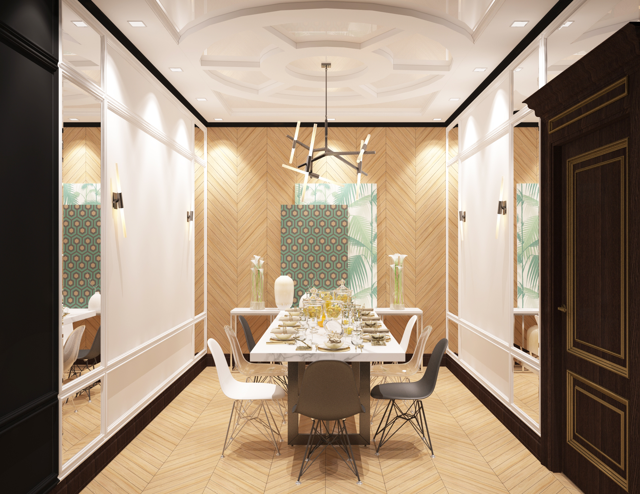 на артефакты не смотрите это потому, что нужно делать с исходным рендером в 32битах, а не с жепегом пожатым.Зеленым показал косяки с геометрией которые явно видно, На стенку и пол я бы добавил немного грязи в глосинес слот и чуть больше отражения а то выглядит как будто не обработаная матовая доска. И плинустная текстура сильно заметно повторение, ее или повернуть чтобы фактура дерева вдоль шла или другую поискать более разнообарзную