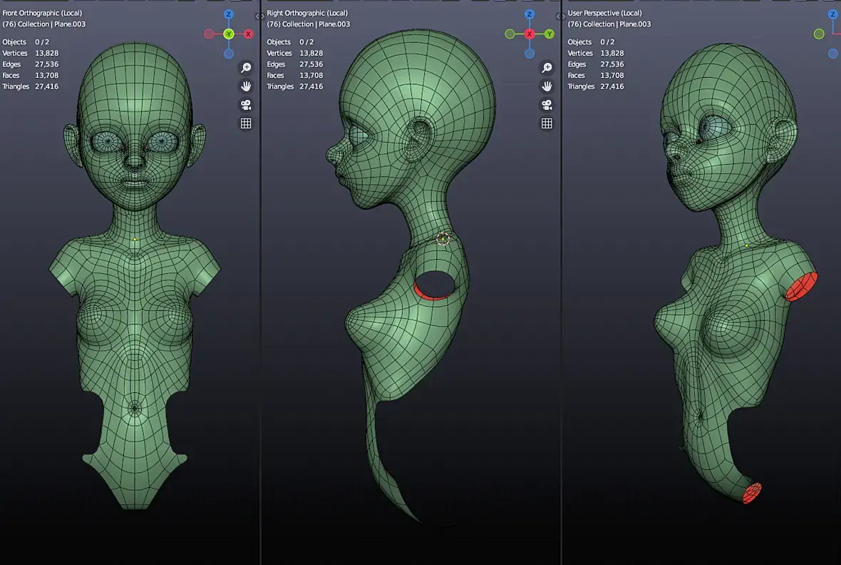 Исправил сетку. Убрал попу т.к там топология была ужасна. Практически ничего не сделал, но сетка теперь нормальная. Пропорции так же исправил. Убрал горб на спине и поправил поясницу.
