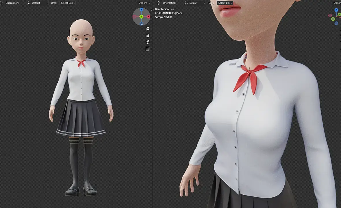 Поправил материалы, теперь не выглядит как пластик. Теперь она пионерка) Хотя материал надо поправить.