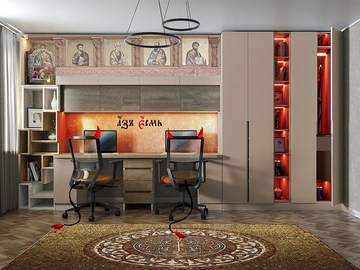 полки надо оформить хоть в подобие системы а не хаос. Хаос в православии вообще аналог диавола. То есть Вы комнату человеку наполовину обдиаволили. В курсе?