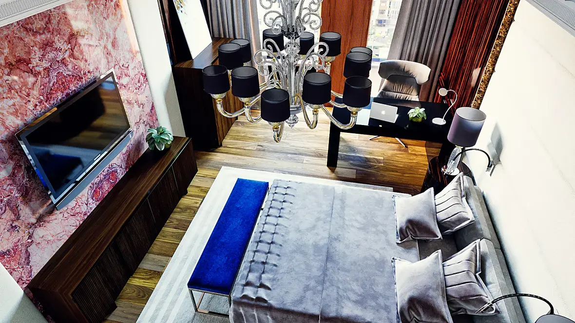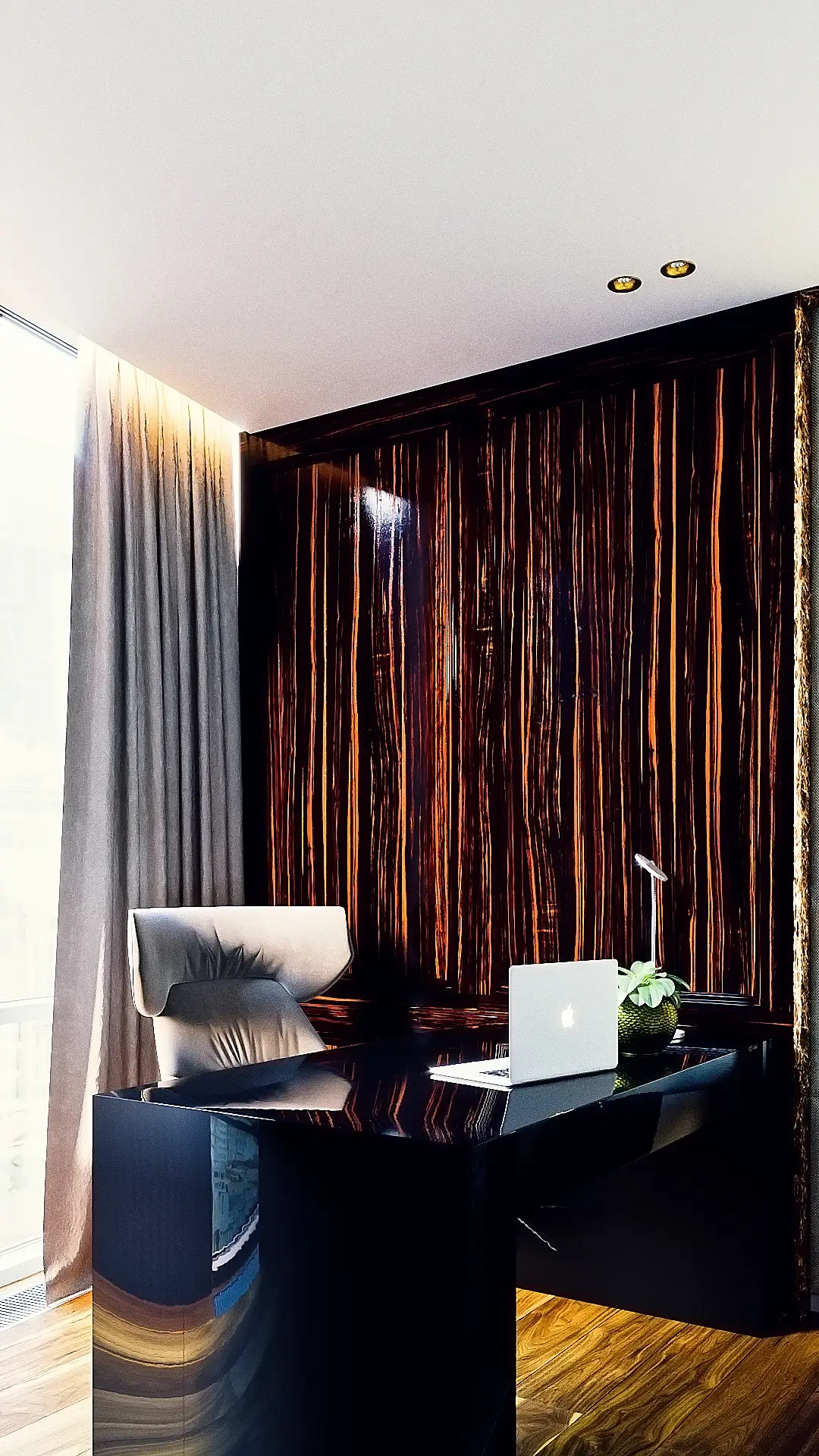 - Кессоны со светильниками (2 ряда перпендикулярных окну) хочется отцетровать относитльно стен. Возможно они уже по центру. Но на ракурсе кажется, что нет