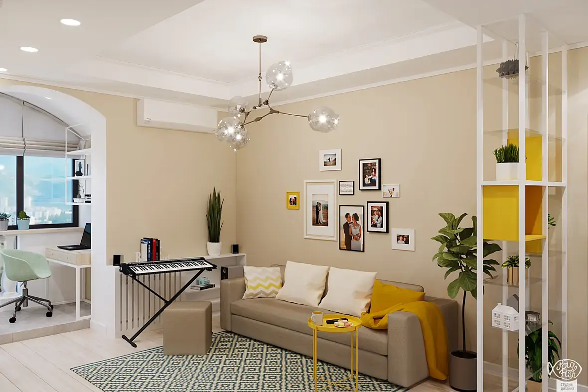 Сейчас интерьер стерилен. Надо добавить карты в бамп, рефлект, настроить материалы нормально. Во-вторых, не надо включать все источники света. Зачем все новички это делают? Используйте хдр карты или связку сан+Скай. В освещении должны быть холодные и тёплые тона, холодные от неба, тёплые от солнца или точечно от внутренних ис(очень аккуратно и только там, где это нужно).