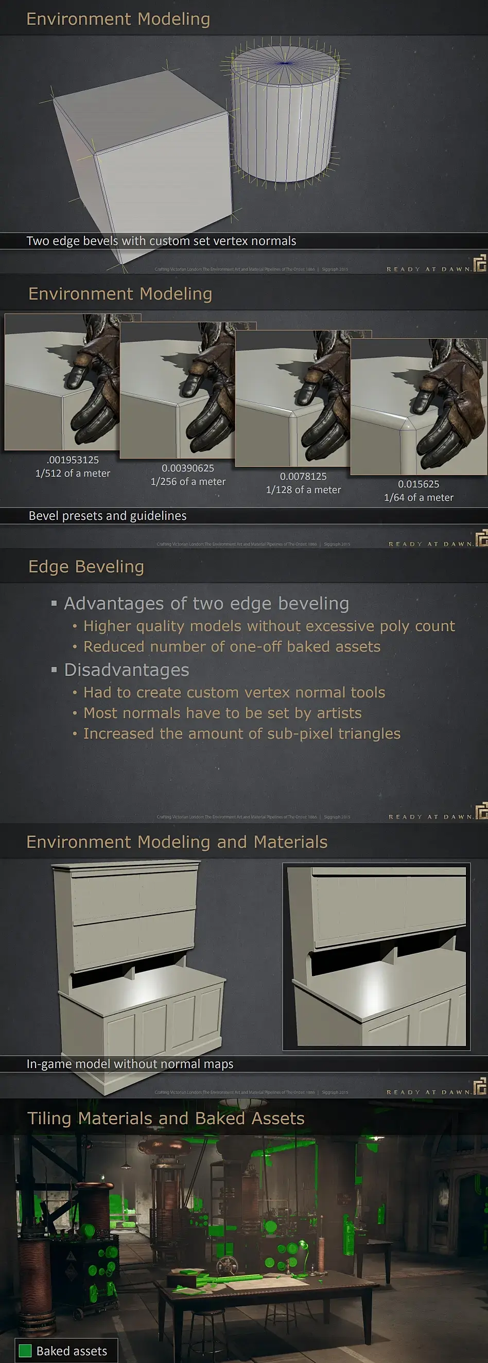 Для малых пропов, которые не будут рассматриваться вблизи, бэйк хайполи иуникальный текстуринг, все еще оптимальное решение.Отличный пример паплайна в The Order 1886: