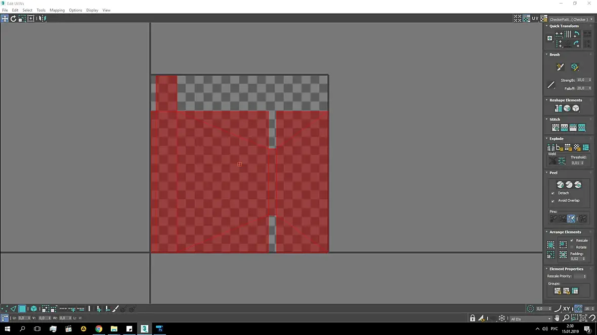 1. Расстояние между шелами и краями UV минимум 2px.