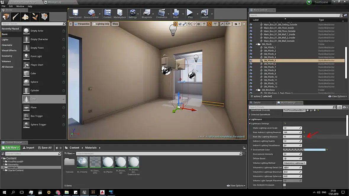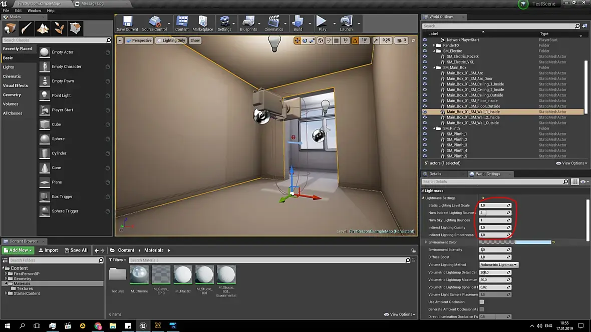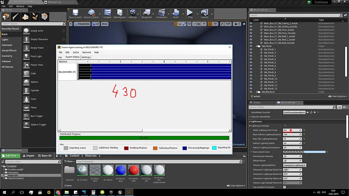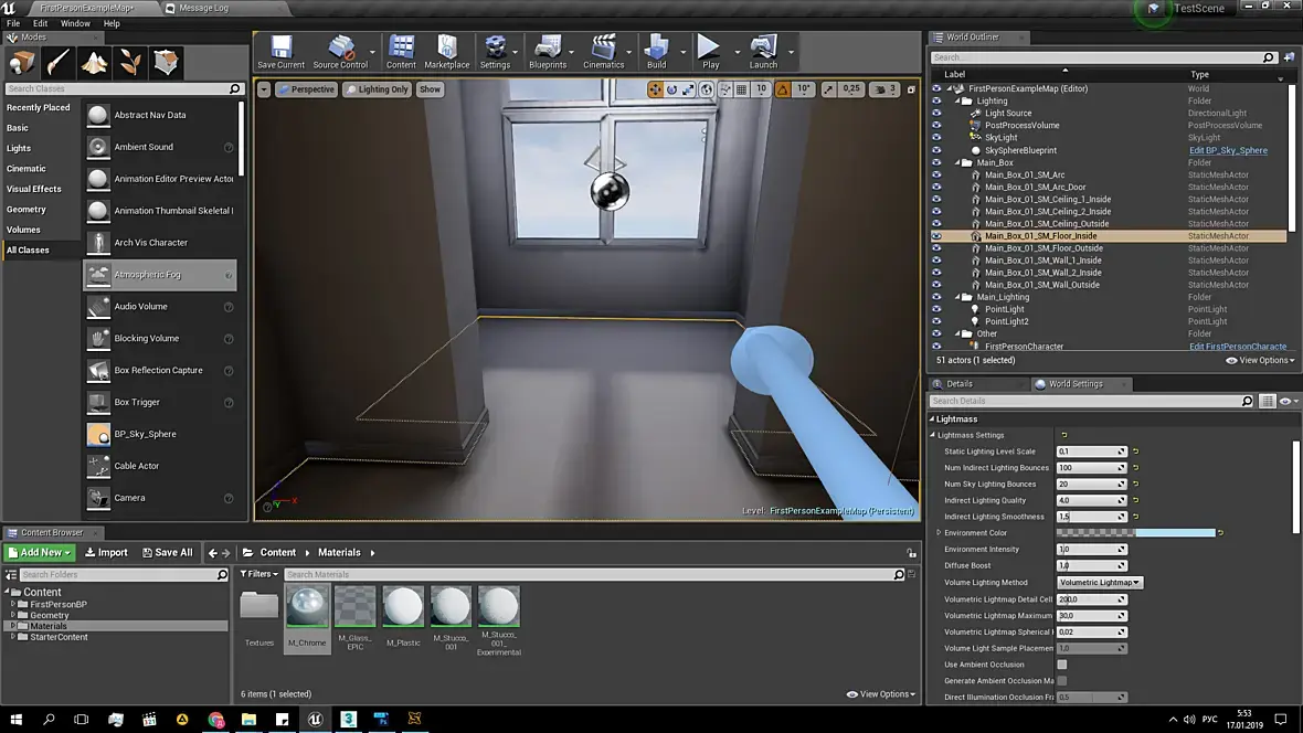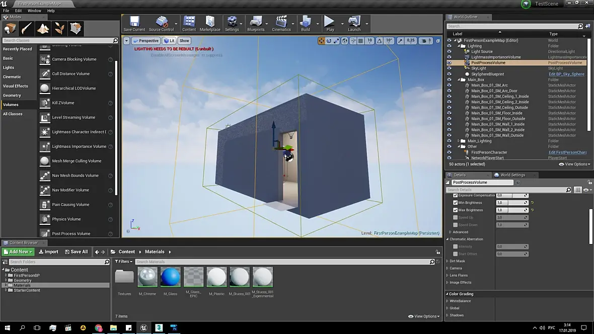 Уменьшу размер LightmassImportanceVolume до размера моей комнаты, меня не интересует что будет происходить снаружи. И буду молиться, что мне кто то подскажет, почему появляются лишние ВолюмСферы Лайтмапа.