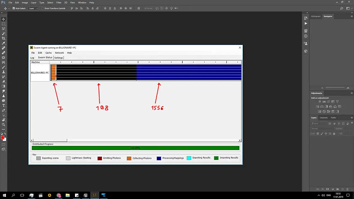 1671sec/60=27,85 минуты. Для такой маленькой сцены (коробка, плинтус, два источника света), мне кажется это долговато. Потестим дальше.