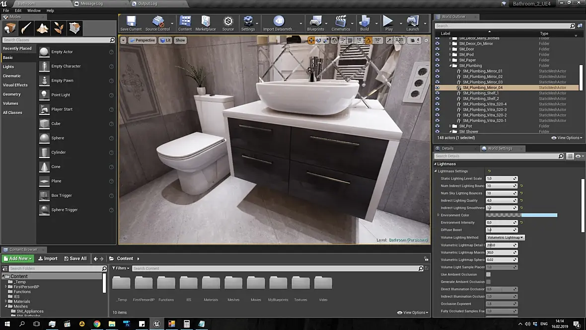 Автору- На мой взгляд вы делаете ошибку пытаясь нахрапом поднять довольно большой объём материала. Думаю вам нужно начать с освоения подготовки и импорта в движок простых пропсов. Модель-> Развёртка -> Сабстанс дизайнер(запекание карт и создание процедурного sbsar-материала для последующего импорта в движок) -> настройка и рендеринг картинки в движке. А потом уже переходить к импорту сцен, когда у вас процесс создания карт и материалов будет налажен.