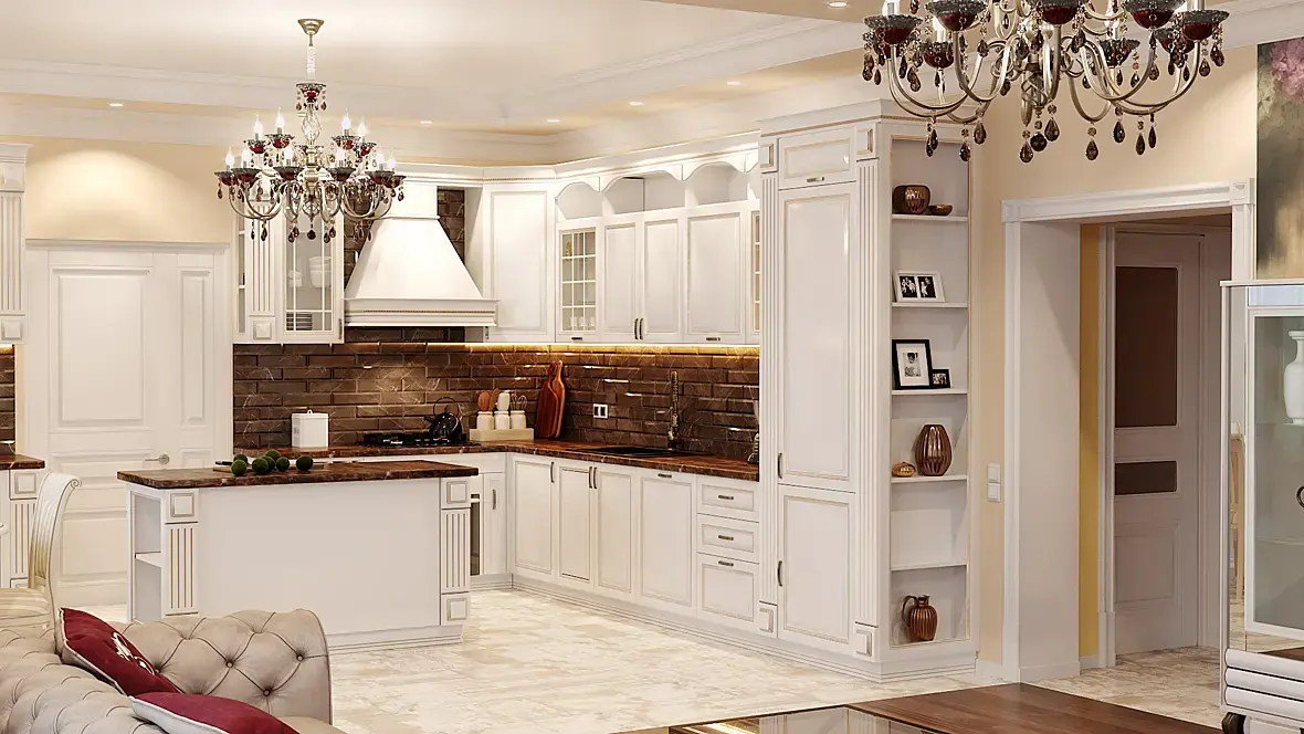 Есть ещё вот такой ракурс камеры, он поинтересней в плане композиции, просто хотелось показать всю кухню поэтому выкладывал именно ту камеру, что скажете.
