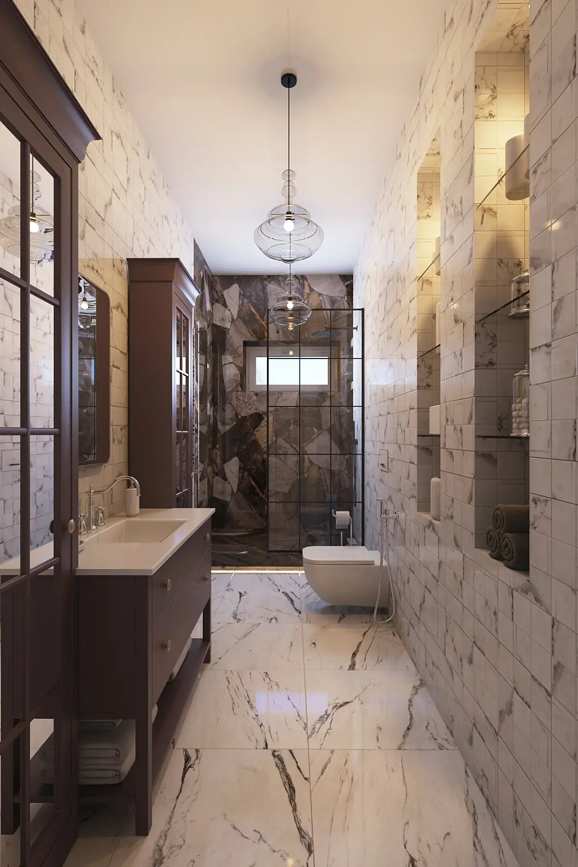 grdesigner мрамором я не торгую, такая фактура очень нравится заказчику, унитаз там потому что там стояк, переносить мебель означает переносить проем, а с той стороны это вообще некрасиво, потому что дверь будет упираться в стену