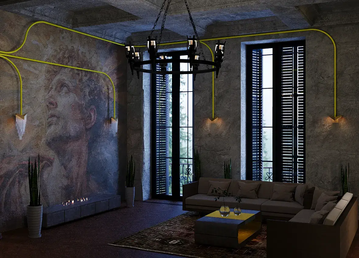 если хотите тренировки, начните с простых сцен, например просто комната с окном и стулом, поработайте над материалами, посмотрите уроки по многослойным материалам, по дисплейсу, как смешивать, как делать декали, как наносить повреждения, отпечатки пальцев, царапины, пыль, грязь, карты ао, дистанс, курватуры. раз вас тянет на состаренные интерьеры. большинству моделей нужно править материалы, поэтому учитесь как создавать реалистичные материалы на простых сценах, часто приходится подгонять цвет под рендер. ну и база, не использовать черный 0,0,0 и не использовать белый 255,255,255. на улице свет ярче, чем лампочки потому будет засвет в окне. все материалы имеют отражения, не забывайте насатривать текстуры шереховатости, они дают блики и потертости