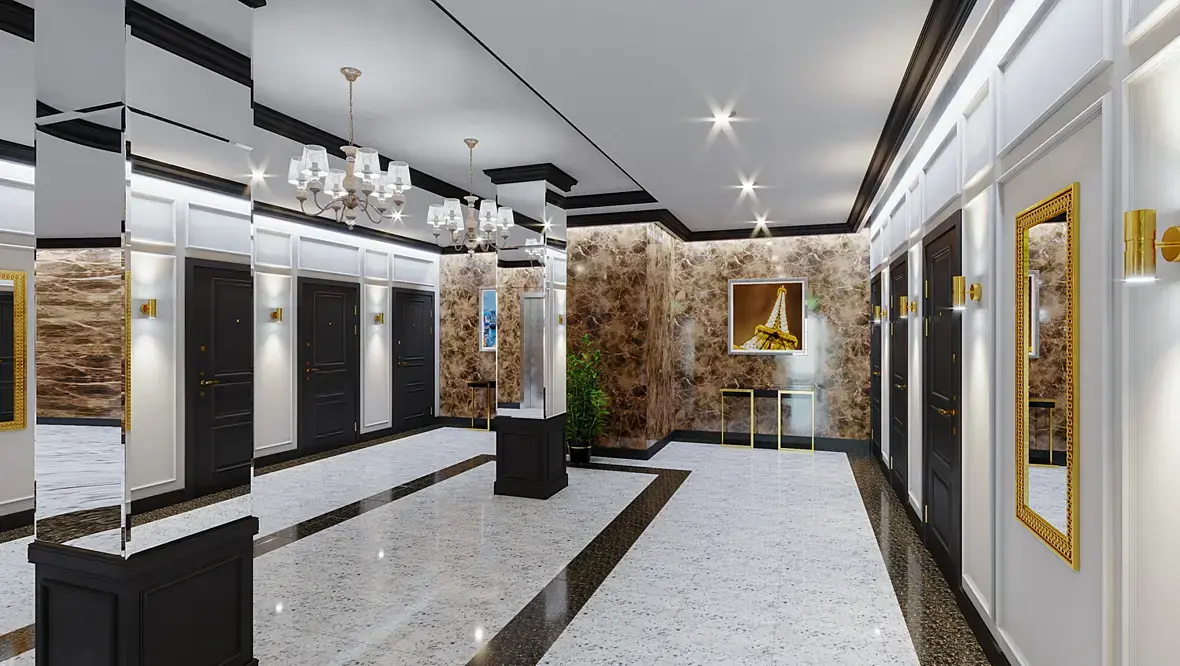 По визуализации Вам знатоки напишут, а я могу по собственно дизайну: все пестрое, слабо сочетаемое, совершенно не интересное и вдобавок разваливается на куски. Идея отсутствует, как и композиция. Плюс к тому, не обижайтесь, но "астанинский" стиль я хорошо знаю - он у Вас во всей красе. Залепить все стены эмперадором, туда же зеркала, для экономии подстелить под все это дешевенький гранитик, совершенно левые светильники... Ну хоть в пинтересте интерьеры холлов посмотрите, что ли.
