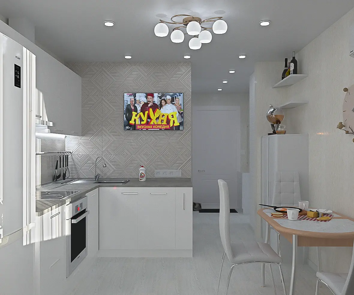 Всем доброго времени суток. Работа нуждается в доработке. Визуализация выполнена по реальному дизайн-проекту квартиры. Выставляю кухню и прихожую, в запасе остаётся детская, гостиная, ванна и туалет. Заранее признателен за дельные замечания.