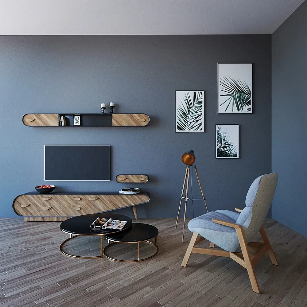 По интерьерам, могу сказать только, что слишком суховато и местами рвано. Есть подозрение по разнице в некоторых материалах, что рендер был сделан в короне, часть материалов накинута из базовой библиотеки, какая-то часть сделана индивидуально. Пока все выглядит слишком локально, между зонами связь плохо улавливается. На второй картинке, слишком много разного дерева в одном месте, как по мне (темное, желтое, коричневое по тону).По первой картинке, очень странно висят светильники, там придется постоянно идти на низкий поклон, чтоб взять книгу или что-то с полки. В целом на всех визуализациях отсутствуют источники света на потолке, что тоже не есть хорошо, только на первой картинке есть декоративный локальный свет. По второй картинке, столики подобраны ни к месту, там вижу только связь черная столешница-черная полка, желтый цвет ножки - желтый оттенок дерева у кресла, я бы попробовал подобрать ещё что-то. (Например, это столик смотрелся бы более уместным на 3й картинке, одинокое золото не есть хорошо, разве что если его совсем мало) Вообще с 3й можно было бы сделать конхветку: Серый пуф, кресло в цвет стенки с черными тонкими или аккуратными ножками (которые его как бы выделяли и добавили контраста), кофейный столик со второй визуализации. И двигаться в том же духе.