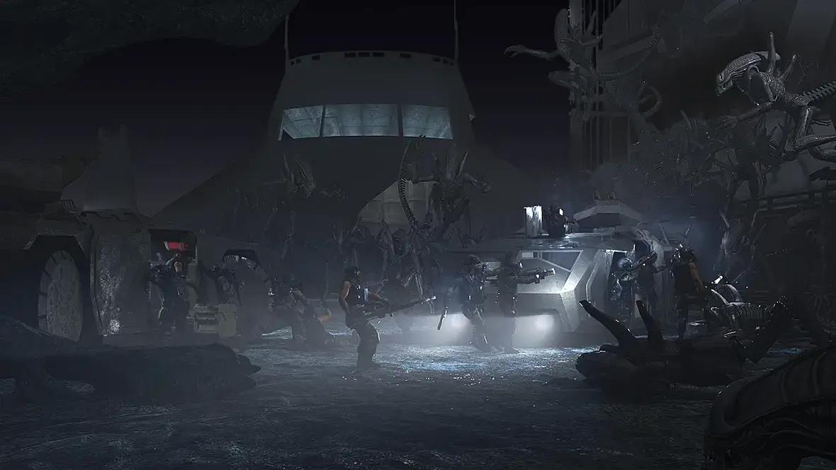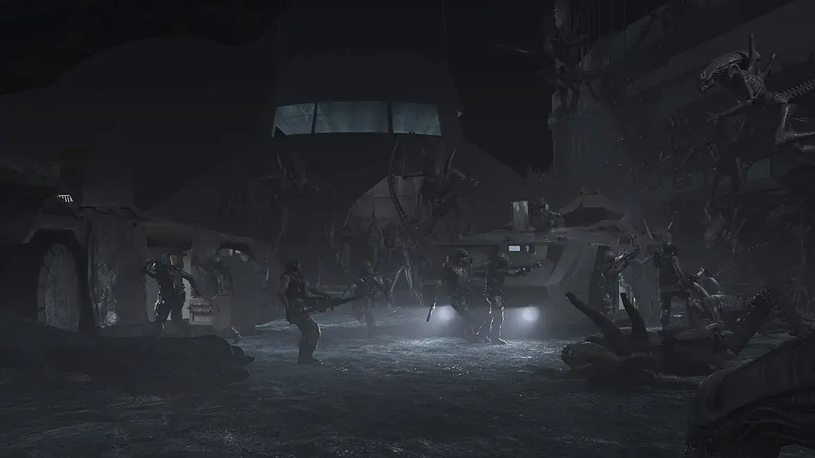 bor150ff, на ксеноморфов, что уже полегли, кровушкой их знаменитой бы побрызгать. Ну, которая зелёная должна быть. Можно ещё осколки панцирей добавить.