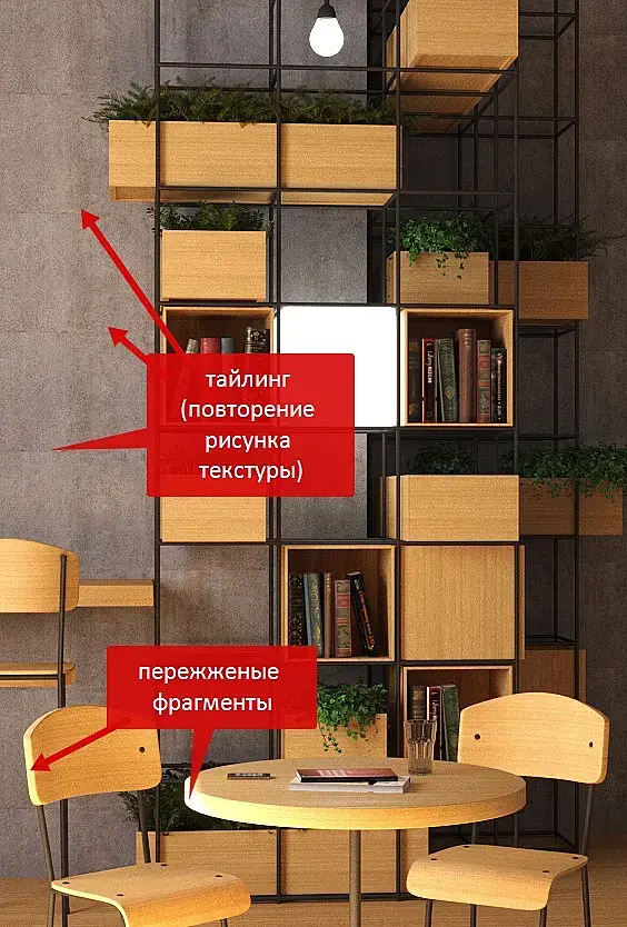 2. Нужно проявить фактуру, блики/отражения на основных материалах: дерево, металл, бетон.