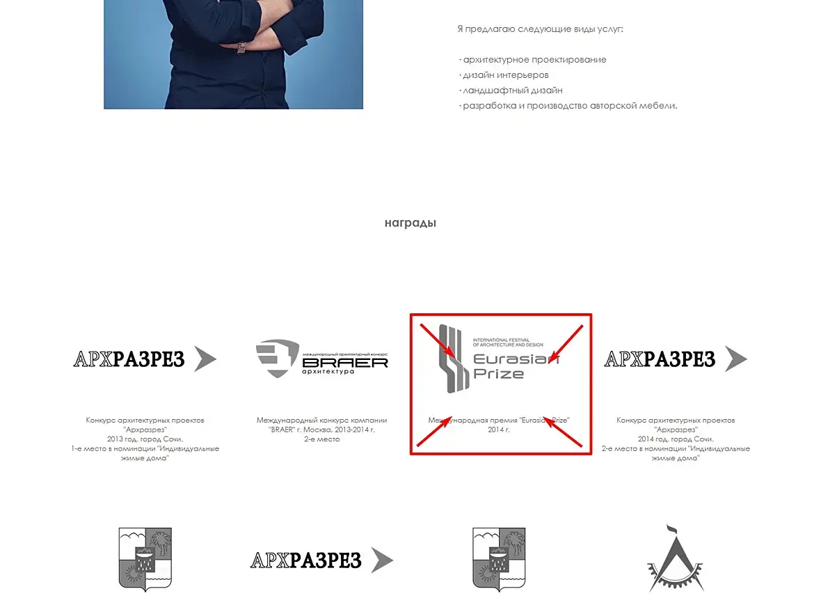 А ещё когда заходишь в награды, случайно ткнув, обнаруживаешь, что там, оказывается, есть проекты. Я б не додумалась. Нажала посмотреть информацию о конкурсах. Мне кажется, это сильно недоделаная идея с точки зрения подачи. Но может это моё уставшее восприятие. Не настаиваю, что надо что-то менять. Просто там столько всего, а на странице и намёка нет, что под лого конкурсов проекты