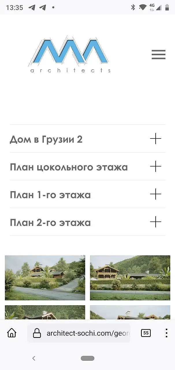 , который нравится исполнением, шрифт совершенно элегантный и обрати внимание на выпадающее меню справа - три полосочки, нажал, появился минималистичный красивый навигатор по страницам, не нажал - на экране минимализм, шрифты четкие, контрастные даже будучи серыми, плюс картинки подобраны очень контрастирующие с основным фоном - во всем четкость! И я бы, скорее всего на заглавной странице смотрел бы не в сторону просто статично весящего рендера, а тоже полоску с самым ярким проектом, прям вот орущим: "Заходи!!!" Ну или, как на вышеупомянутом сайте анимацию проектов.