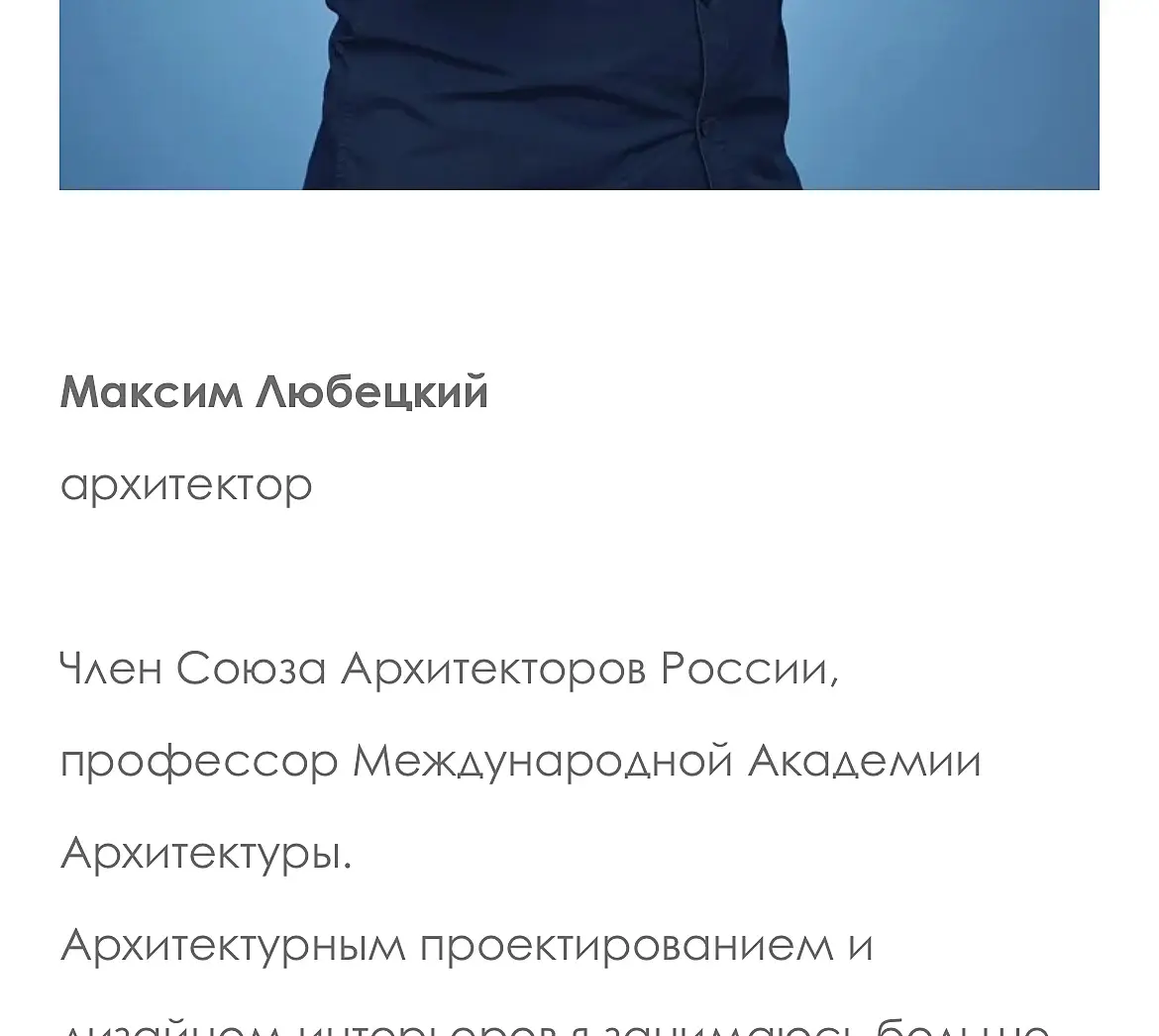 Вообще, на сайте сейчас никак не артикулированы конкретно ваши особенности/отличия, выделяющие вас из толпы конкурентов (и даже членов союза архитекторов). И преимущества работы именно с вами. Но не штампами, а живым понятным языком.