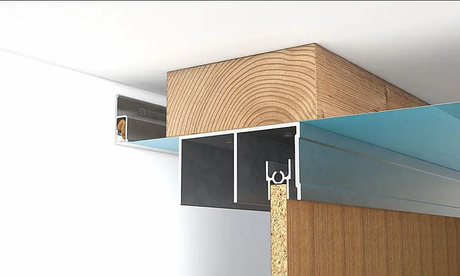 Конструкции есть разные, но плюс минус они рядом. Рассмотрим то, что вам нужно организовать шкаф из стен потолка с полом и дверей купе, если нижняя шина устраивает и используем самое простое, тогда то что вам Agapova предложила. Спрятать в потолок верхнюю шину можно, примерно по тому же прицепу как ниша для штор. Если шина нижняя не устраивает то смотрите в сторону подвесных систем, снизу не будет шины, будет направляющий стержень в то или ином виде, который будет удерживать двери от болтанки, но болтанка всё равно будет больше чем в первом варианте. А если мы рассмотрим вариант что мы делаем полноценный шкаф, тогда поле расширяется. Там и накладные могут быть системы, когда фасад закрывает и крышки и боковины. А не как распространено, фасад между верхней и нижней крышкой, так и накладные с опцией монтажа дверей в одну плоскость. В обоих случаях вы не будете видеть ни верхней не нижней направляющей, все механизмы прячутся над крышкой сверху и под крышкой снизу.