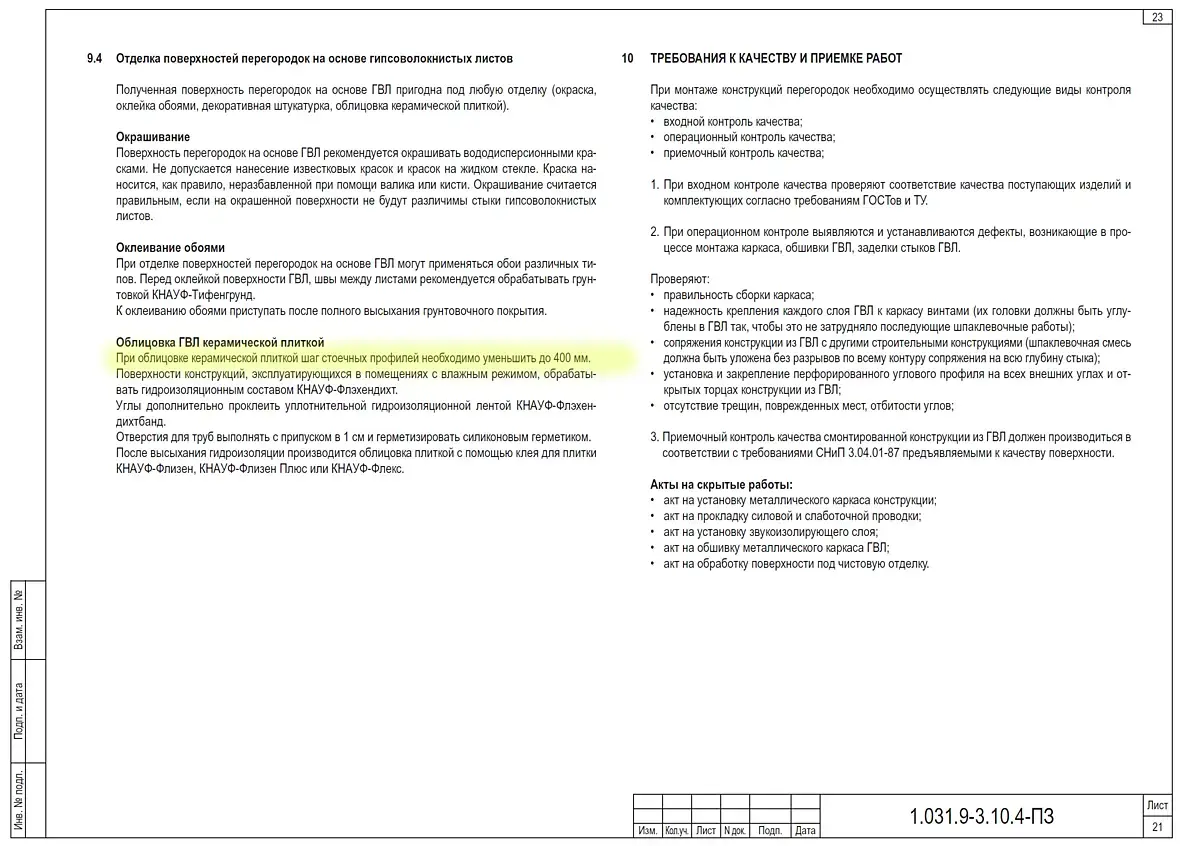 Один слой гкл или гвл можно, но будет хлипкое г. Там, где используется плитка, шаг стоек делают 400 мм. (щас прикреплю рекомендации от кнауф).