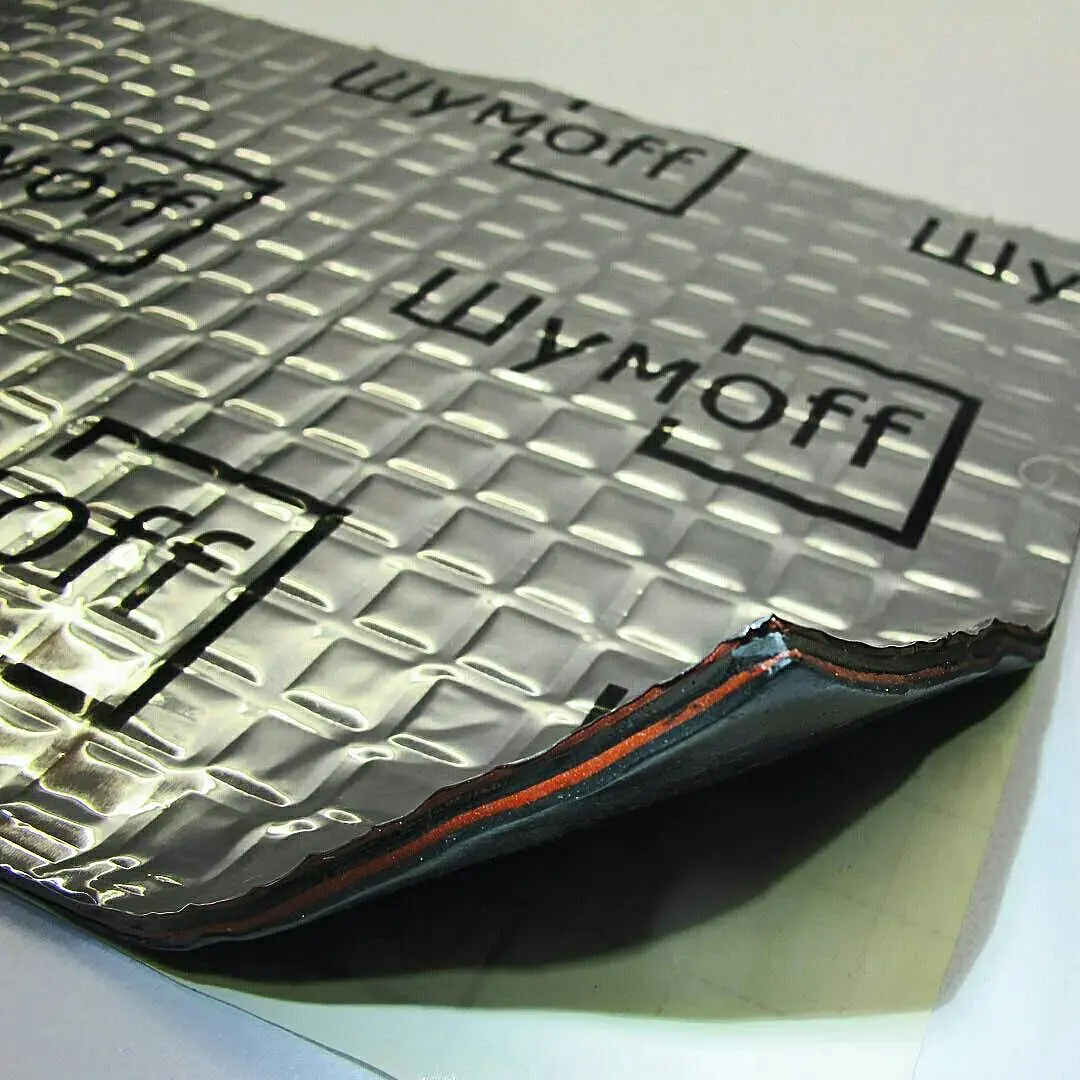 Автошумка используется в другом виде: есть лист толщиной около 5 мм, мягкий, вроде плотного поролона, снаружи фольга или что-то вроде, а с другой стороны самоклеющийся слой.