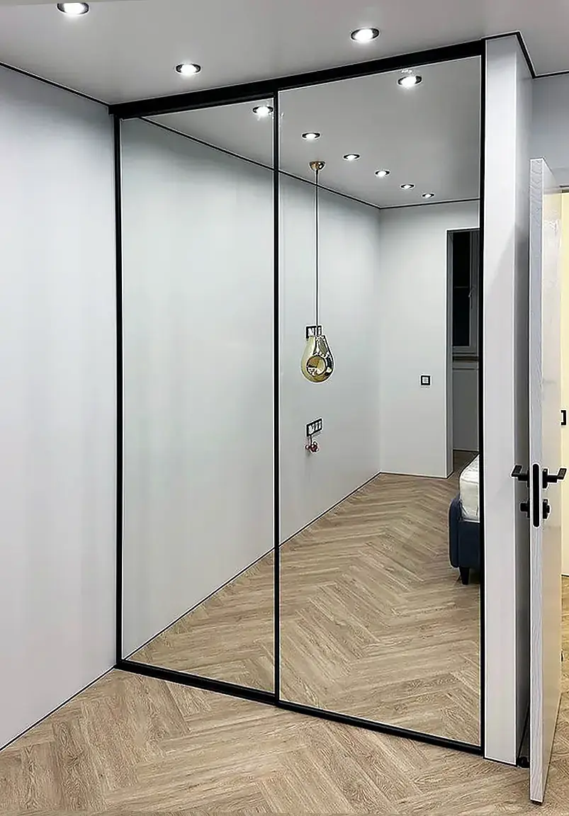 Чистовая ширина получается 1490мм, я предположила что возьму стандартные чёрные направляющие, а двери на заказ по 750х2700. Сделают ли такие полотна без рамы в реальности конечно вопрос...
