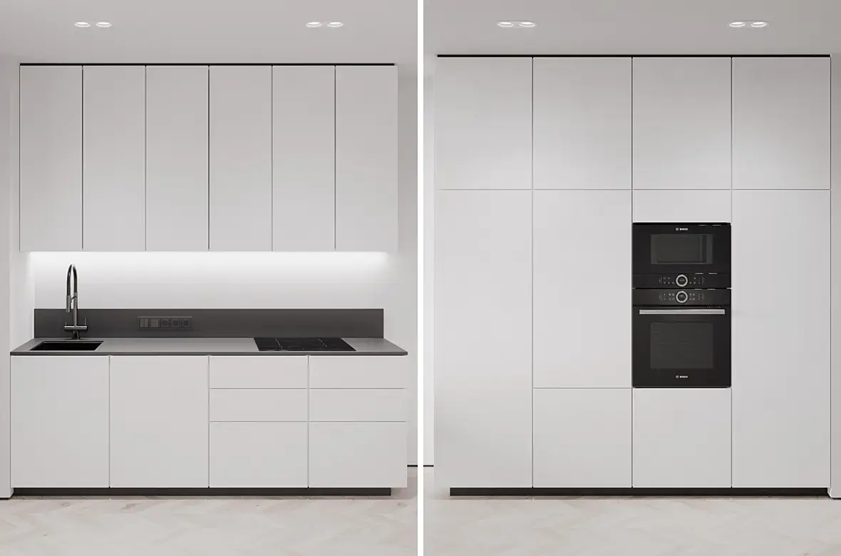 Не забывай так же, что минимализм очень дорог в исполнении. Начиная от материалов и заканчивая перфекционистами исполнителями. Двери со скрытыми коробками, скрытые плинтуса очень зависят от ровных профилей. Если они волной то очень скоро будут появляться "паутинки" и микротрещины, которые никак не устраняются. Ты просто с ними живешь.