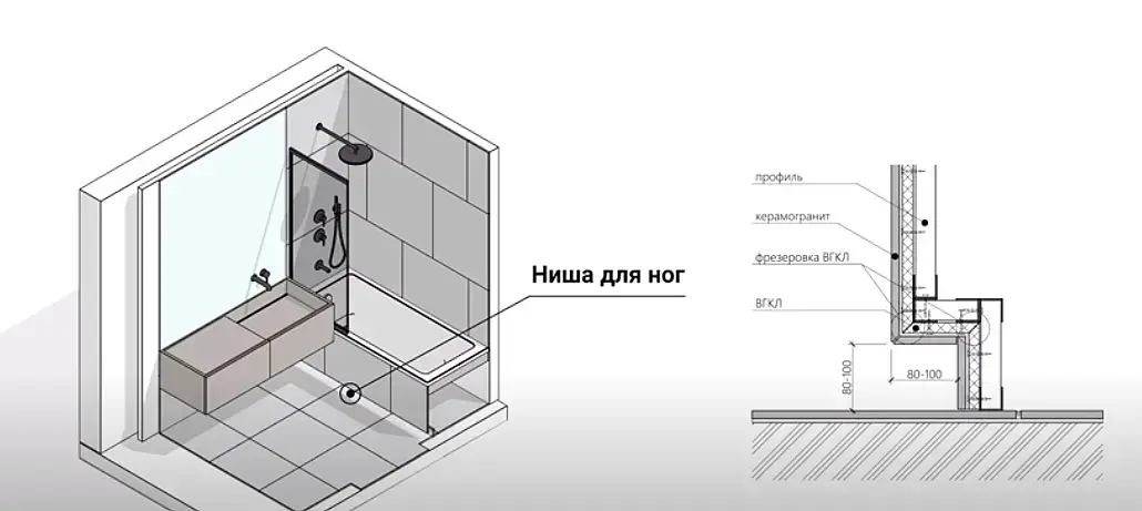 По идее как раз важно. Ванны есть с низким "клиренсом", и если предусмотреть люк доступа выше этого углубления для ступней, то упираешься в стенку ванны. И надо мудрить съемный узел с этим выступом. Плюс борта бывают не глубокие, сильно утопить нишу под ступни тоже не всегда может получится
