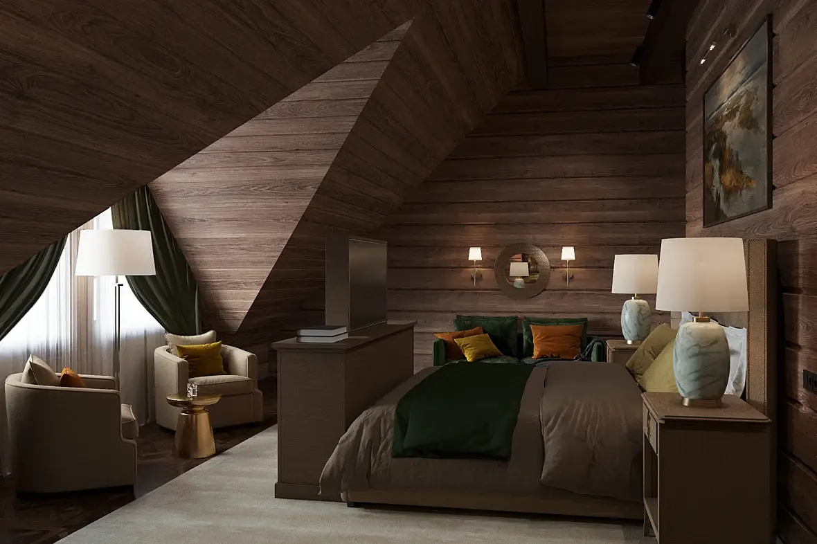 Темные картинки, света не хватает, потом материал дерева тут основной, его надо как следует доработать. На втором рендере кажется слишком острые углы перспективы. И непонятно, чтоза штука на конце кровати стоит? Телевизор? Он там портит всё, да и вообще весь этот комод я бы убрал, мало места итак. Это моё мнение :)