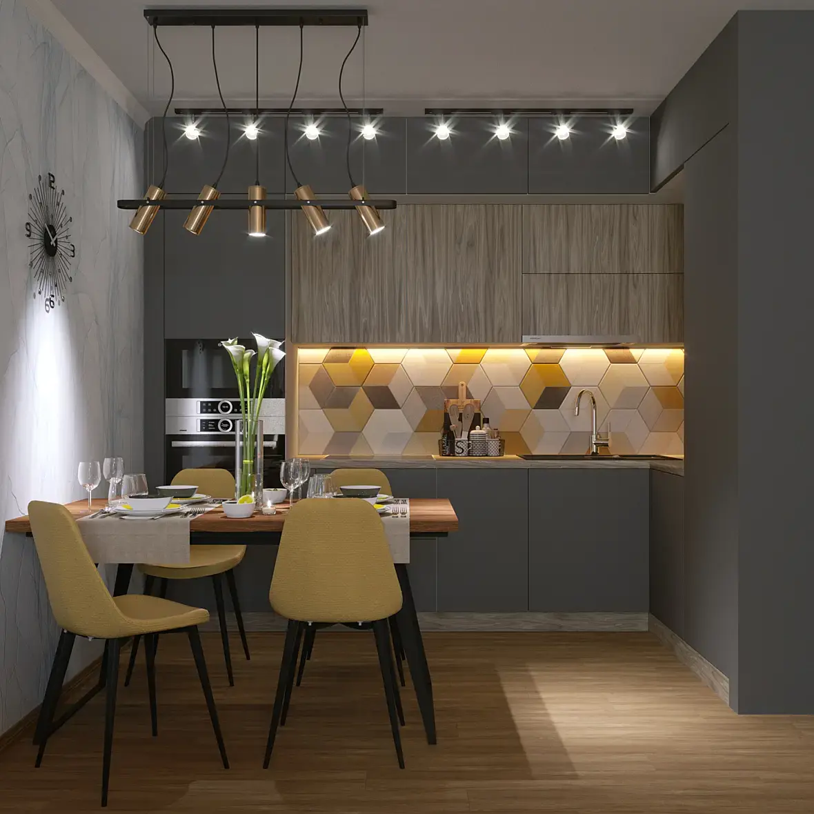 - тайлится дерево на фасадах кухни