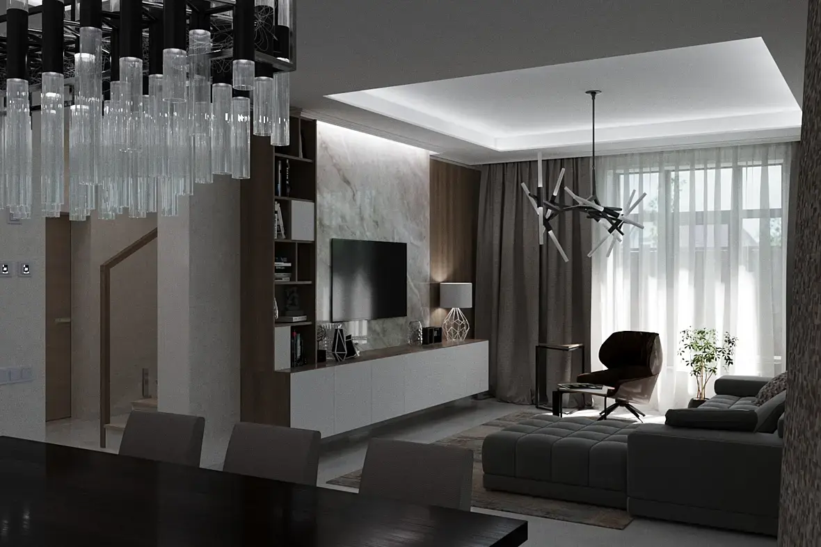 соответственно необходимо изменить гостиную и все остальные помещения, так как они не подходят по стилистике, помогите!!! Вот думаю как изменить теперь гостиную. Никаких реек, никаких деревянных панелей, чем украсить гостиную, если уже и освещение все остальное по потолку подготовленно под предыдущую визу.