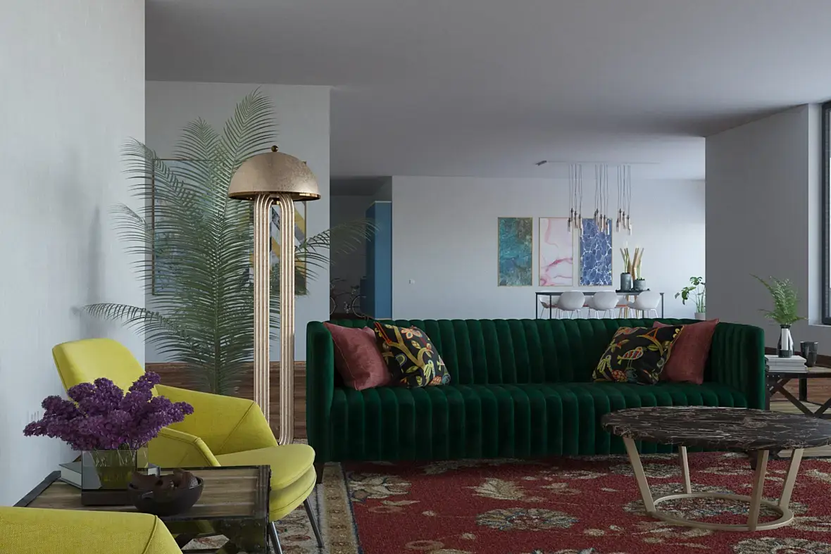 Попытка сделать деревенский "Энди Ворхол" стиль не получился. Как и в предыдущем комментарий, тускло и скучно по дизу: слишком много всего которое между собой ну никак не получилось сочетать. В целом пусто как будто хотели впихнуть основой минимализм, еще какое то непонятное соединение советским дачным стилем. Наполнение тоже непонятное, зачем разные картины в золотых рамках? По зонированию тоже много вопросов, как и по расположению и выбору осветительных приборов. Ощущение что просто набор всего что попадало на глаза. По визу дневной свет не совпадает с бэком (бэк слишком пересвечен), нужно поработать с материалами. Контраста нету, сыро все