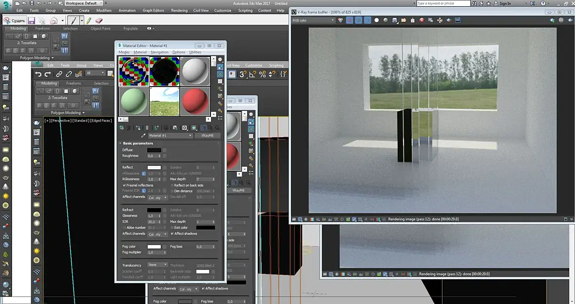 Доброго всем времени, возникла такая проблема в Vray - есть несколько стеклянных дверей, которые стоят друг за другом, за этими дверями находится бассейн и стеклянная ограда. На рендере через несколько дверных стекол перестают отображаться отражения на объектах, такое чувство, что за стеклами видно только диффузный канал. Когда стекла убираю, то все становится нормально, и когда стоит одно стекло, то отражение на объектах за ним видны нормально. В материале стекла выставил ior 1.001, чтобы не было сильного преломления и картинка не искажалась, которое я наблюдал когда несколько стекол стоят рядом. Пробовал накручивать Max depth, но это не помогло. Подскажите пожалуйста в чем может быть проблема. К сожалению нет возможности прикрепить картинки(