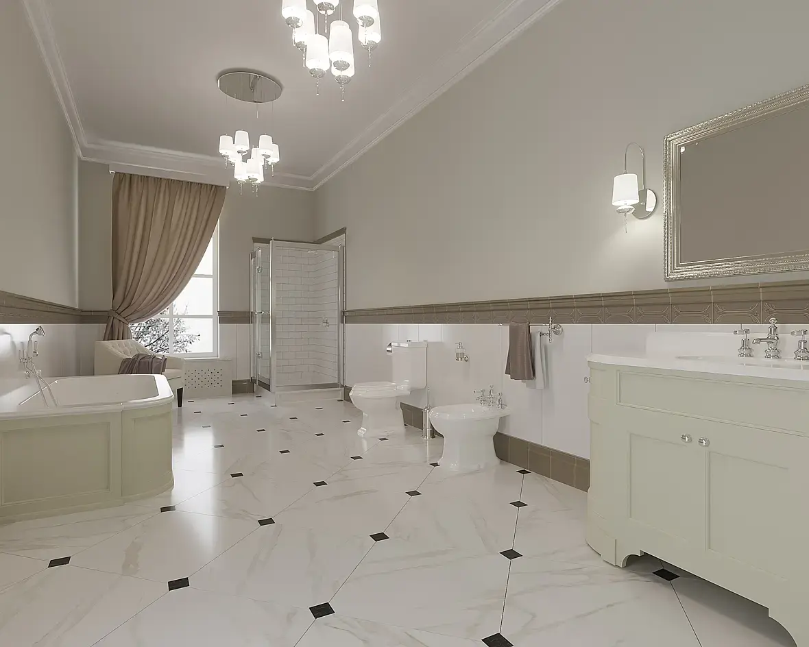Попробуйте делать все акцентами.Раковина отдельно.Ванна отдельно и Т,Д