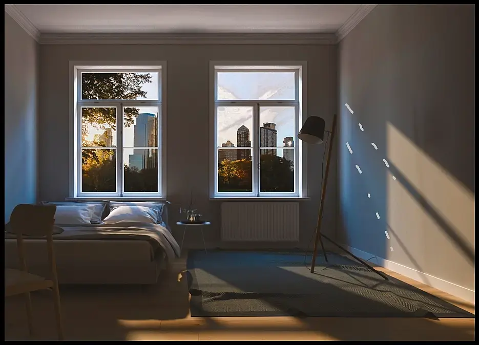 в хате пустовато, скомпонуйте кадр. занавеска тут не вписывается, за окно нужен бэк, так то вроде не плохо, еще бы постобработку в фш и будет нормально