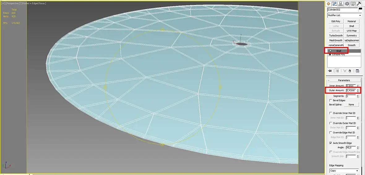 Нажимаем chamfer и сглаживаем грани нашей пластинки.